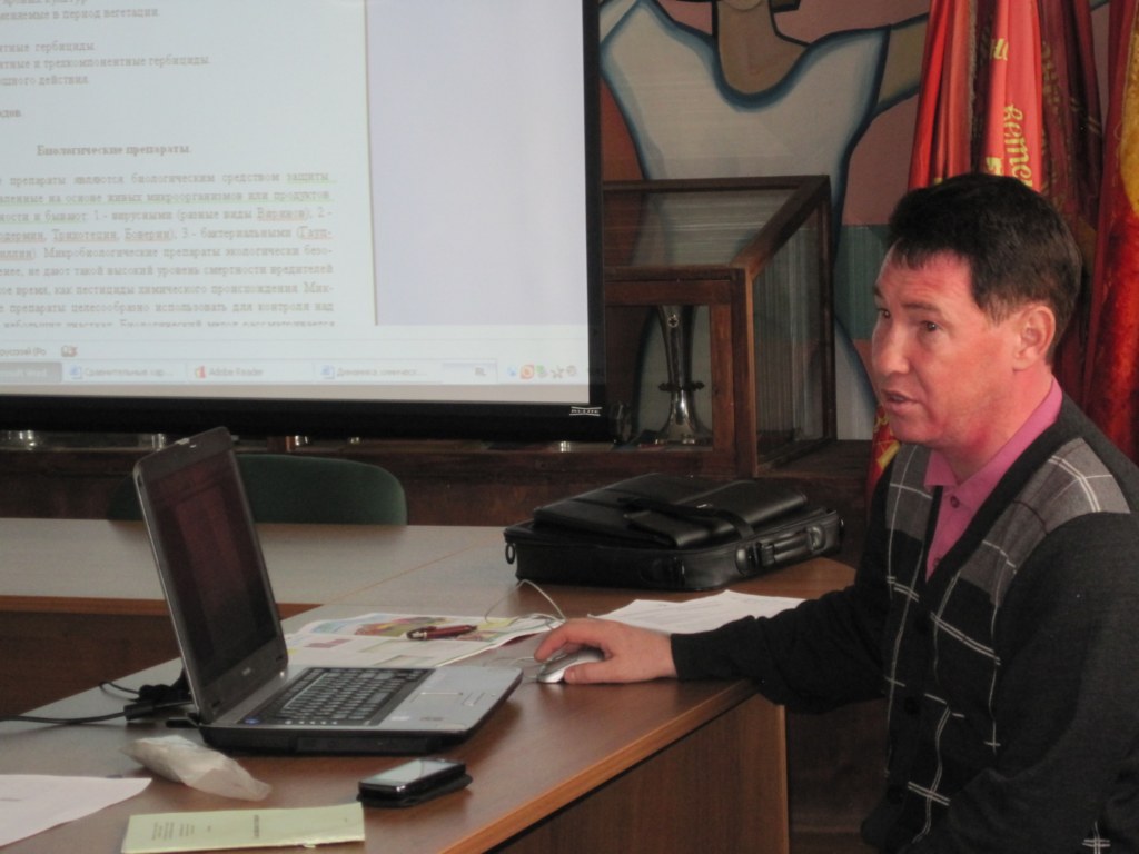 По ходу консультирования были подробно рассмотрены вопросы системы защиты растений. Именно вопрос подбора препаратов для протравливания семян интересовал специалистов. На него и на целый ряд других вопросов подробно ответил консультант «КН», директор ООО «АгроСенгента» Сергей Николаевич Изергин.
