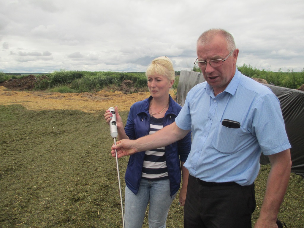 Накануне кормозаготовительной кампании в хозяйстве были приобретены телескопический погрузчик, электронный термощуп и биоконсерванты. Как отмечает консультант-агроном «КН» Н.С.Мамаева, технология заготовки силоса и сенажа была отработана до такой степени, что температура разогрева зеленой массы в период закладки не превышала +28°C (оптимальная – не выше +32°C). В один из дней главный агроном «Надежды» Светлана Костицына и начальник райсельхозуправления Иван Фоминых лично проверяли температуру зеленой массы.